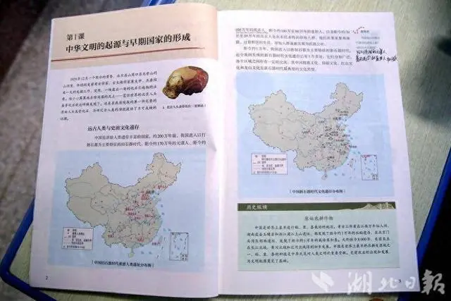 2024年3月8日,在湖北省十堰市郧阳科技学校,学生使用的历史课本第1课中,已录入“...