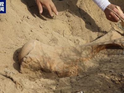 新发现的距今约1500百万年的铲齿象肱骨化石。呼牧摄考古人员挖掘铲齿象肱骨化石。呼...