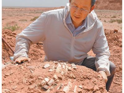 徐星在野外观察恐龙化石。上图:“政和八闽鸟”化石标本。下图:热河生物群与燕辽生...