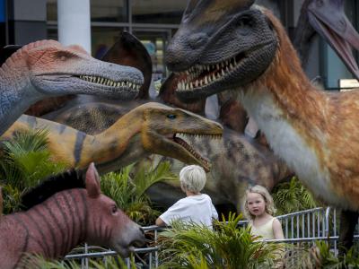 泰国曼谷“恐龙世界节”展出80多个恐龙模型