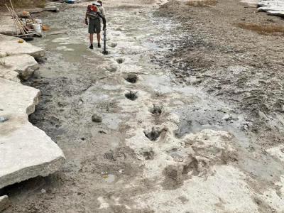 美国得克萨斯州大旱 恐龙谷州立公园1.13亿年前恐龙足迹化石重见天日在今夏异常干燥...