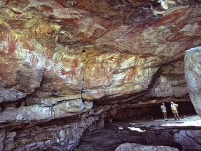 澳大利亚北领地卡卡杜国家公园波拉戴尔山(Mt Borradaile)的一处岩画遗迹(化石网...