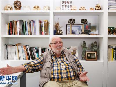 8月8日,法国法兰西公学院教授米歇尔·布吕内在位于巴黎的办公室内接受采访。新华社...