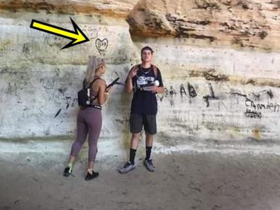 游客在美国伊利诺伊州内4.25亿年历史砂岩上刻字(化石网报道)据东网:一对情侣周一...