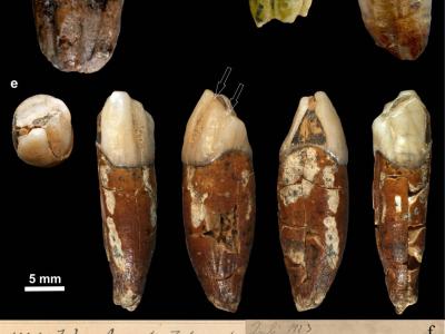 最早在周口店发现的5枚北京人牙齿化石(中国化石网配图) (中国化石网报道)据...