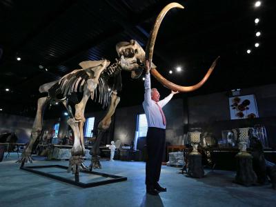 英国即将拍卖一个罕见的珍藏品——具有完整獠牙的猛犸象骨架化石(中国化石网配...