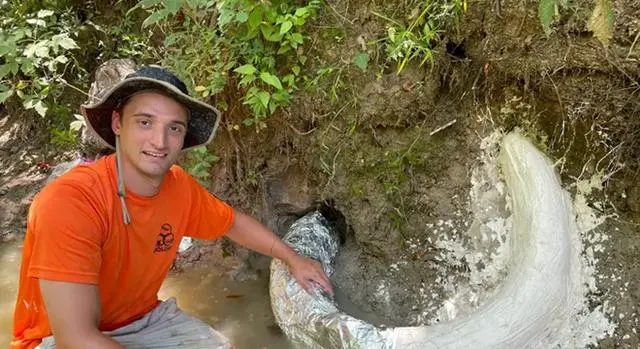 美国一位化石收藏家意外发现罕见哥伦比亚猛犸象牙(化石网cnfossil.com)据中国青年...
