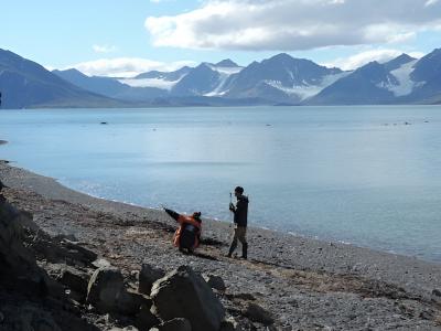 伊森博士和劳齐女士在斯瓦尔巴群岛从事相关研究。学分:怀卡托大学(化石网cnfossil...