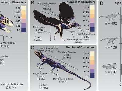 非鸟类兽脚类恐龙、中生代鸟类和有鳞类动物化石记录中字符完整性度量(CCM2)的可视...