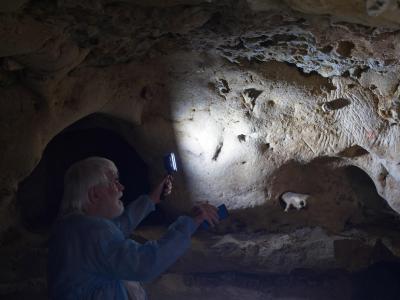 6月26日,法国考古学家在拉罗什-科塔尔洞穴中展示穴壁上的图案。(法新社资料图片)...