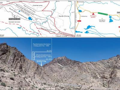 欧龙布鲁克地区石灰沟剖面多泉山组中部采样点及三叶虫占比早奥陶世弗洛期古地理图(...