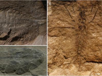 古网翅亚目和碳翅亚目幼虫的习性、胸腹分支。a Rochdalia parkeri(古网翅目),背侧...