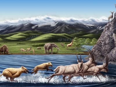 图1 西藏札达盆地上新世哺乳动物群生态复原(Julie Selan绘)图2 西藏...