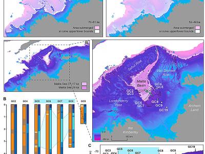a显示西北萨胡尔大陆架的测深数据,其中预测了海平面上升和区域海平面曲线。Ai海岸...