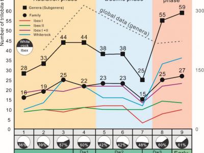 华南板块中奥陶世-晚奥陶世早期三叶虫宏演化阶段划分暨不同分类单元数量的变化基于...