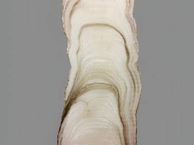 Dripstone纵向切成两半,显示不同的生长层。署名:珍妮·麦卡里(化石网cnfossil.co...
