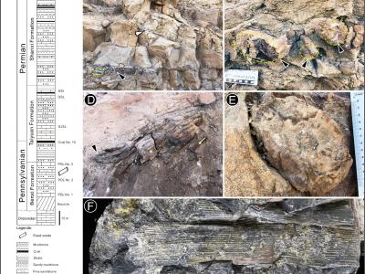 图1 剖面图及矿化木材野外分布图图2 Parnaiboxylon wangi Wang et al. sp. nov.解剖...