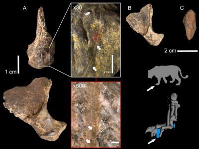 来自Einhornhö区的洞穴狮子遗迹。(一)。指骨III ID 46999448_1384和切痕放大×...