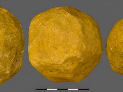 来自以色列乌贝迪亚遗址的三个石灰岩“球体”,研究人员认为它们在140万年前被故意...