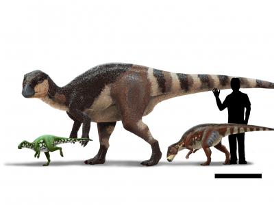 三种横纹齿龙的生活重建和大小比较。从左至右:来自奥地利东部的Mochlodon suessi(该...