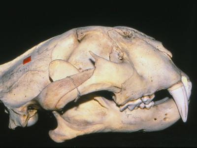 一块哺乳动物头骨化石,牙齿窝里的沉积物,原来是史前蜜蜂筑的巢穴。图片来源:拉萨...