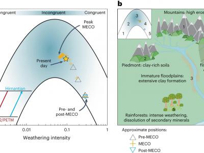 中始新世气候最佳期(MECO)和相应地表条件之前、期间和之后的风化强度德林杰回旋镖图...