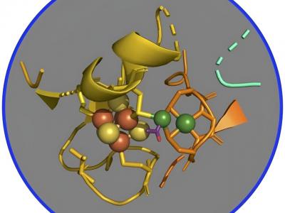 ACS的活性位点,新形成的乙酰基与催化活性镍结合,显示为绿色。来源:Macon Abernat...