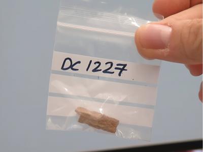 来自俄罗斯丹尼索瓦洞穴的剩余丹尼索瓦11 (Denny)骨头碎片的照片,它来自尼安德特人...