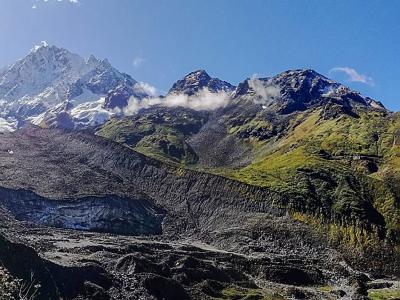 中国西藏波密县海拔3800-4400米的嘎瓦龙东冰川附近的塔卡基亚野外研究点的地貌景观...