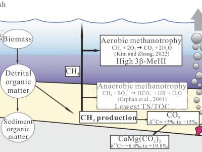 碱性湖泊中微生物活动产生甲烷的模型。鸣谢:夏等,2023。(化石网)据美国物理学家...