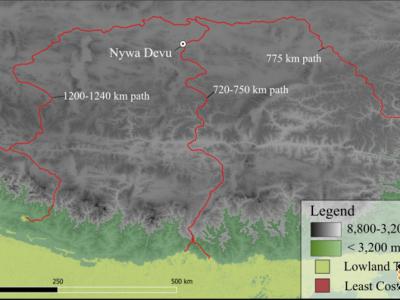 地图显示了人类祖先直立人在早期更新世非洲、欧洲和亚洲的潜在迁徙路线。展示了直立...