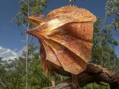 褶边颈蜥蜴是从东南亚到达澳大利亚的许多陆地动物之一。鸣谢:作者达米安·埃斯奎尔...