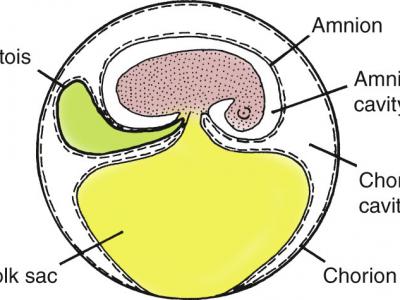 羊膜卵,显示半透性外壳和胚外膜。致谢:迈克·本顿(化石网)据布里斯托尔大学:南...