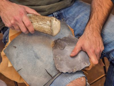 肯特州立大学考古学副教授兼主任梅廷·埃伦博士演示打制燧石。肯特州立大学(化石网...