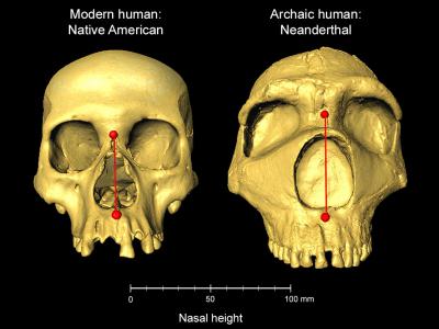 尼安德特人的高鼻子(右)使得现代人类的祖先适应了更寒冷的气候。(Credit: Dr. Ka...