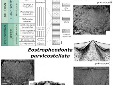 齿扭贝类祖先代表的产地层位及3类表型单元(Palaeontolgy期刊新闻图片,Sally Thom...