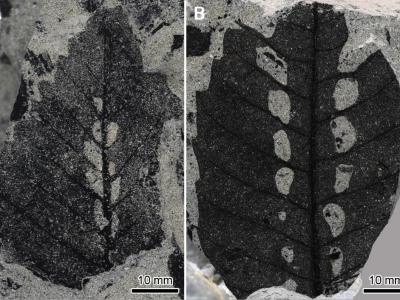 大羽羊齿类植物显示昆虫取食损害。Credit: Current Biology (2023). DOI: 10.1016/...