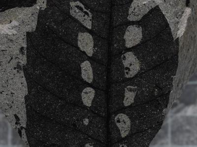 团队发现的两种大羽羊齿类植物化石。(冯卓 摄)现生植物叶片在夜晚合拢后被咬出的...