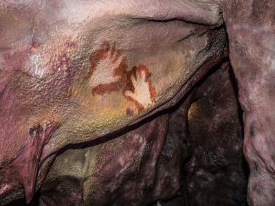 马尔特拉维索洞穴复制品与尼安德特人四指手印,西班牙卡塞雷斯。(WH_Pics/Shutter...
