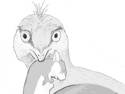 赵氏小盗龙猎食小型哺乳动物;图为示意图。赵氏小盗龙藏有哺乳类动物足部残肢(化石...