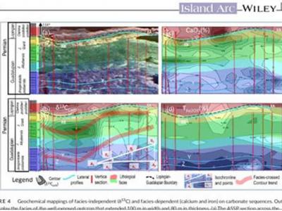 二叠系乐平统-瓜达鲁普统界线辅助层型剖面地球化学地图。很明显,同一层岩石的地球...