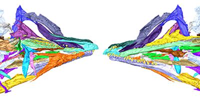 图1. 距今1.2亿年鸟类雅尾鹓鶵头骨的三维复原(王敏供图)图2. 雅尾鹓鶵头骨面部骨...