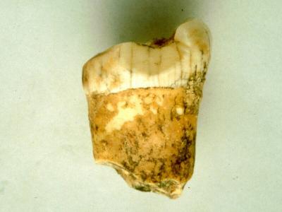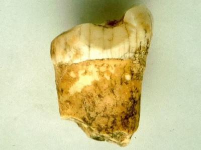 一块哺乳动物头骨化石,牙齿窝里的沉积物,原来是史前蜜蜂筑的巢穴。图片来源:拉萨...