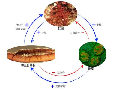 海洋中红藻与等足目甲壳动物和硅藻形成的双重互利关系图(化石网报道)据中国科学院...
