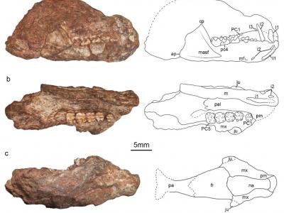 一块哺乳动物头骨化石,牙齿窝里的沉积物,原来是史前蜜蜂筑的巢穴。图片来源:拉萨...