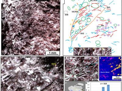 蜘蛛化石白色方框内为扫描电镜图像位置,右上为硫(黄色)和硅(粉红色)化学图像(...
