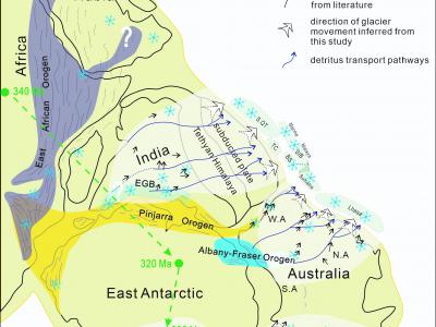 冈瓦纳东北缘古地理重建及晚古生代冰川分布图(化石网报道)据中国科学院南京地质古...