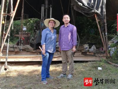 两位论文共同第一作者马晓娅博士和祁昌实博士在打钻地合影(化石网报道)据扬子晚报...