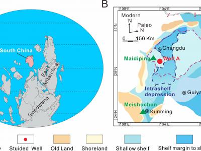 早寒武世全球古地理图以及华南古地理重建(化石网报道)据中国地质大学(北京):随...