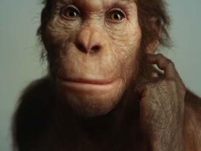 研究小组复原的源泉南方古猿形象骨骼化石表明了源泉南方古猿“过渡性”的混合特点,...